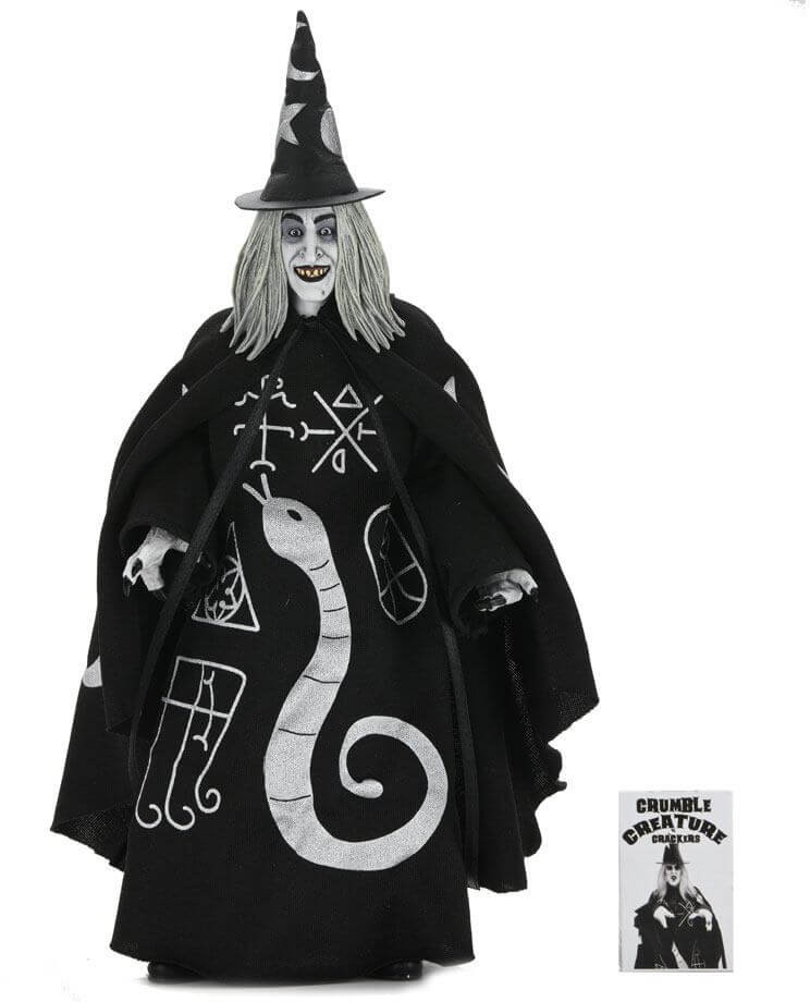 Hey kids, it's Zombo! From Rob Zombie's The Munsters, Zombo is coming at you live as an 8" clothed action figure from NECA. Tune in to The House of Zombo, sponsored by Crumble Creature Crackers, and play along with this Zombo figure, which features tailored fabric clothing, removable hat, and cereal box. And remember, kids - for a limited time, get your very own Black Plague Spreader Kit in specially marked boxes of Crumble Creature Crackers cereal! Window box packaging.