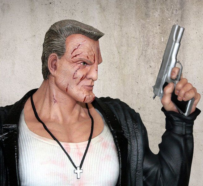 Brilliantly portrayed by Mickey Rourke in the movie, Marv is captured in classic pose with pistol in hand, bloodstained shirt and heavy trench coat. With an authentic likeness of Marv, this incredibly realistic statue stands an imposing 50 cm tall on its Sin City themed base.
