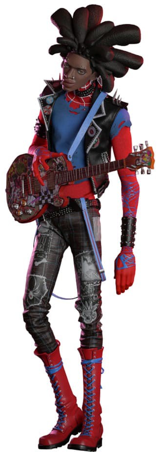Den filmnøjagtige Spider-Man-actionfigur har en nyudviklet hovedskulptur med separat rullende øjeæblesystem og et maskeret hoved med sølvpigge for at efterligne signaturlooket. Hans punk-dragt er omhyggeligt gengivet ved at blande skulpturelle elementer og stofelementer til en utrolig præsentation, der består af en nittet vest, mønstrede bukser, skræddersyet skjorte, skulpturelt bælte med seler, halsbånd, armbånd og støvler. Der er en bred vifte af tilbehør, bl.a. en indviklet punk-mønstret guitar, en guitareffekt, en dimensionel rejseanordning, forskelligt webtilbehør, en baggrund med popkunst-tema og en dynamisk udstillingsbase.