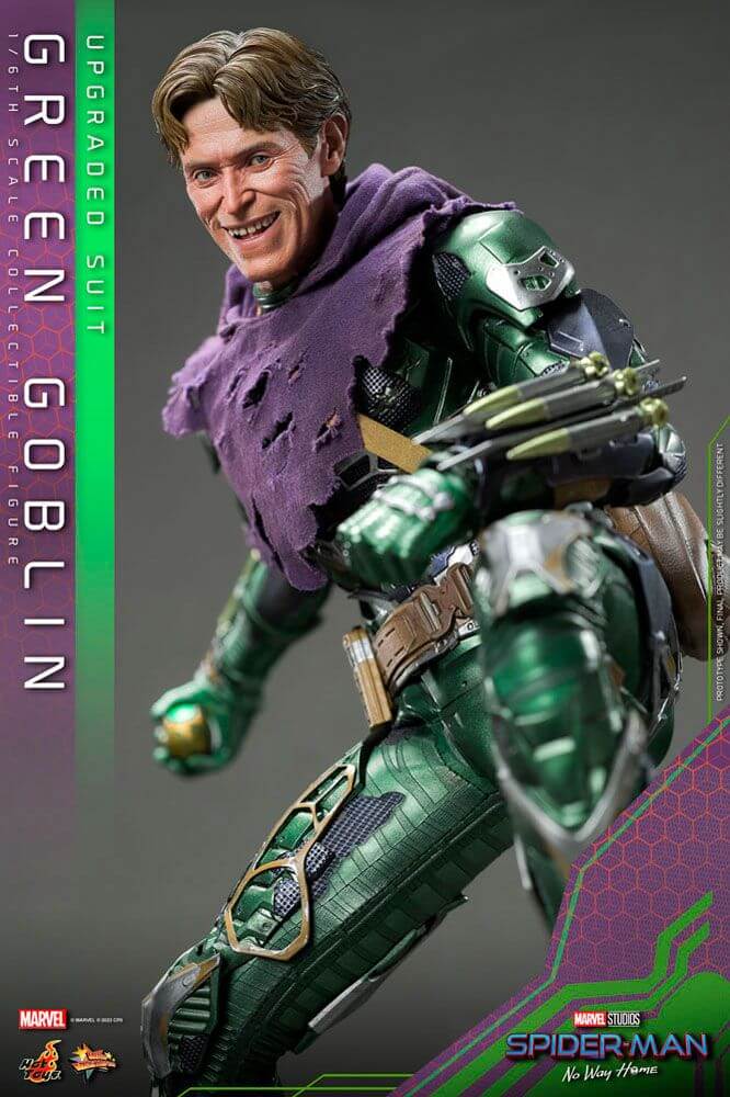 Spider-Man: No Way Home collectible series continues to amaze fans around the world! Joining Hot Toys' Movie Masterpiece Series is the Green Goblin (Upgraded Suit) Sixth Scale Collectible Figure with fabric poncho and enhanced armor outfit translated in every detail.