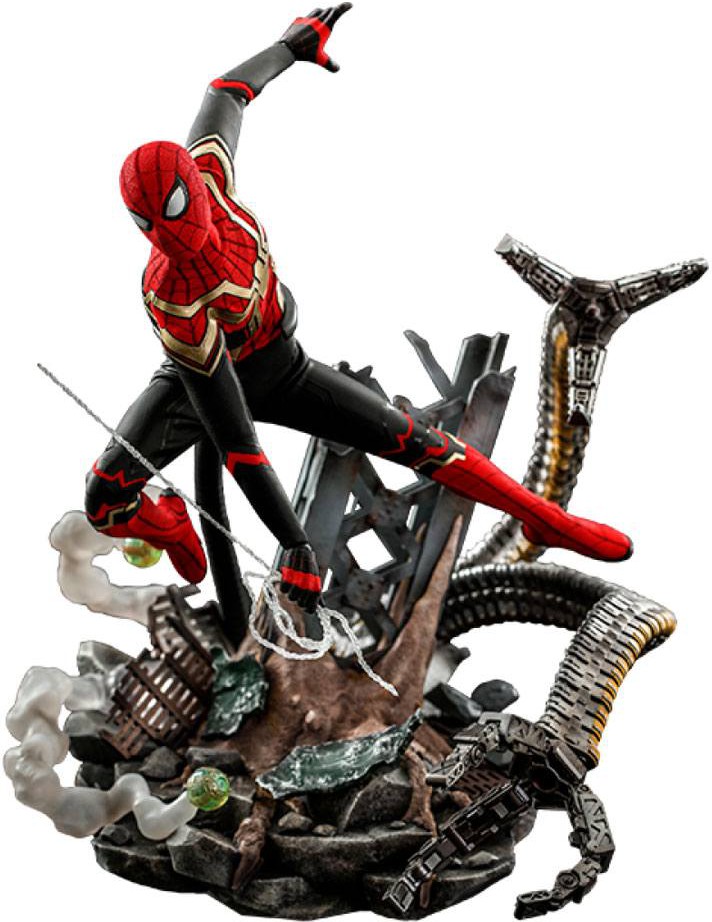 The Deluxe Version will exclusively include a newly developed half masked Peter Parker head sculpt, and a battlefield-themed diorama figure base with elements of Spider-Man's foe including Green Goblin, and Dr. Ock's bendable tentacles with articulated claws wrapping around.