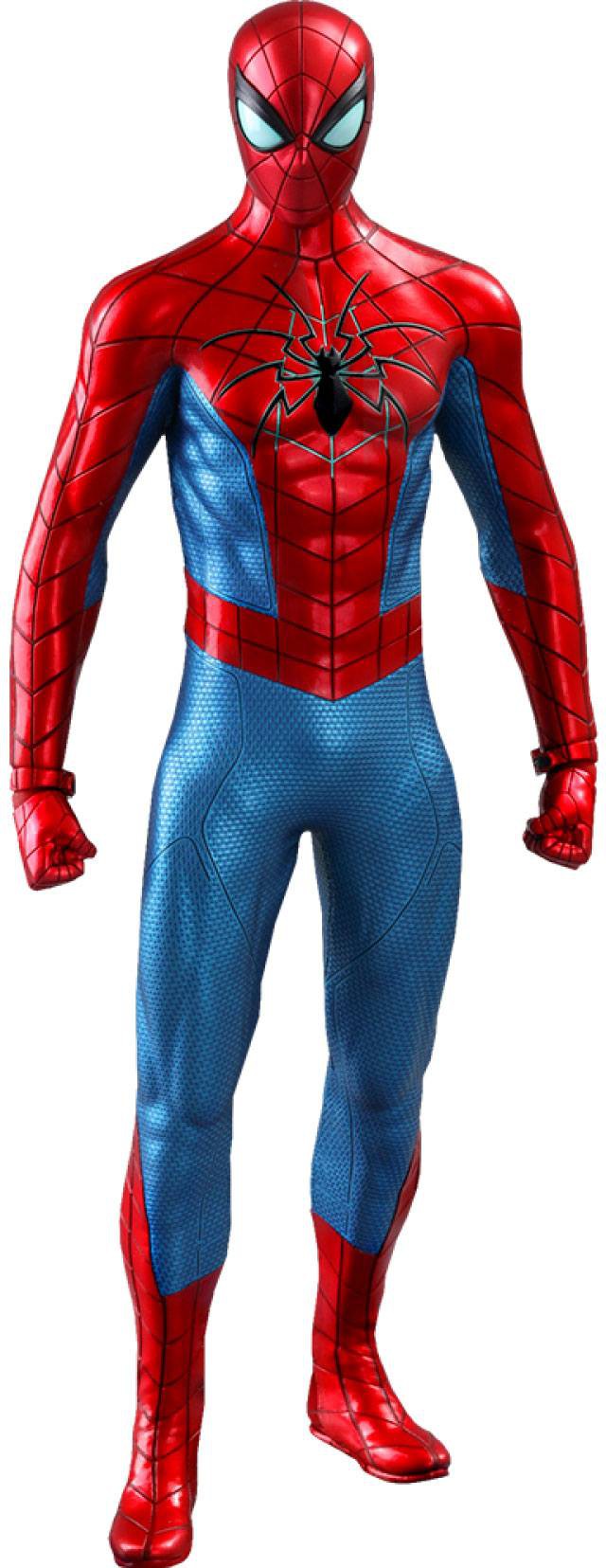 Developed by Peter Parker at Parker Industries, the Spider Armor - MK IV Suit is a high-tech variation of the classic red and blue costume with a distinct glowing spider insignia. Made of metallic liquid nano-technology, the advanced armor is capable of absorbing all damages, which renders Spider-Man completely impervious to harm in the critically-acclaimed video game Marvel's Spider-Man.