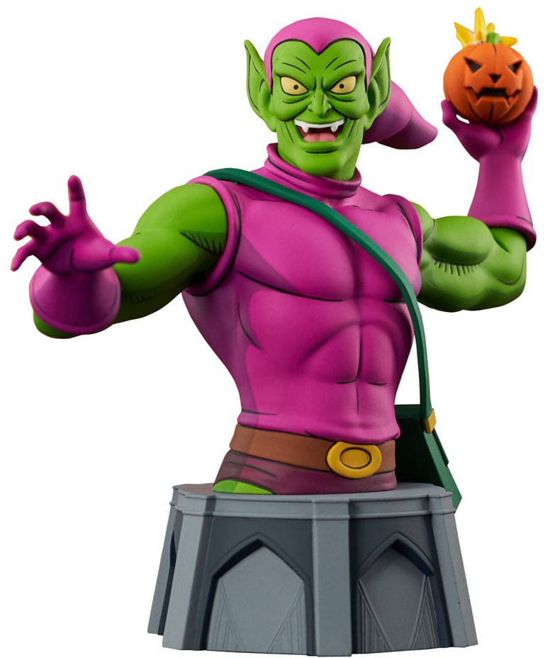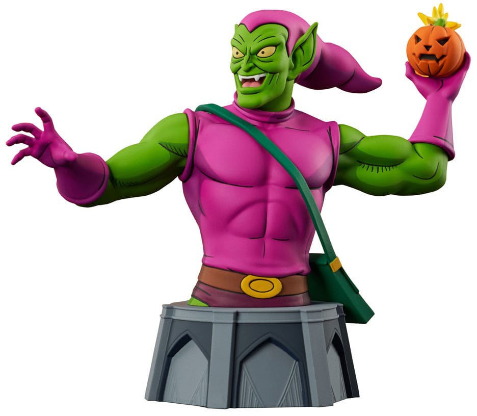 Pas på, Spider-Man! The Green Goblin er på jagt, og han har en græskarbombe med dit navn på! Denne minibust af Norman Osbornes alter ego i skala 1/7 er baseret på skurkens optræden i Spider-Man: The Animated Series. Den er ca. 15 cm høj og har detaljerede skulpturer og farveapplikationer i animeret stil. Den er begrænset til kun 3.000 eksemplarer og leveres med et nummereret ægthedscertifikat i en farvestrålende vinduesæske. Designet af Barry Bradfield, skulptureret af Alterton!