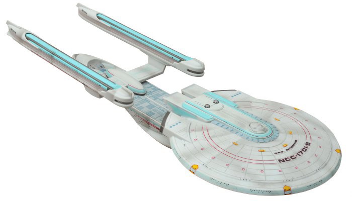A Diamond Select Release! Designed by Art Asylum! Red alert! Red alert! The Excelsior-class starship is back with all-new paint deco to replicate its on-screen damage from Star Trek: Generations! Packaged in a "Try Me" window box so customers can test its movie-accuratelights and sounds, the Enterprise B measures 16" L and comes with an adjustable display stand