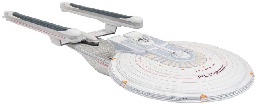 The next electronic starship from DST and Art Asylum is finallyleaving drydock! The U.S.S. Excelsior, registry number NCC-2000, commanded by Captain Hikaru Sulu, came to the rescue at the end of Star Trek VI: The Undiscovered Country when it helped the Enterprise defeat General Chang and his experimental Bird of Prey. This new ship measures 16" L and features film-accurate lights and sound effects, as well as the voice of George "Sulu" Takei himself. Includes adjustable display stand.