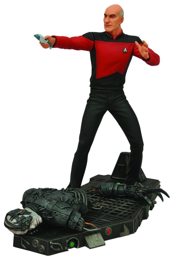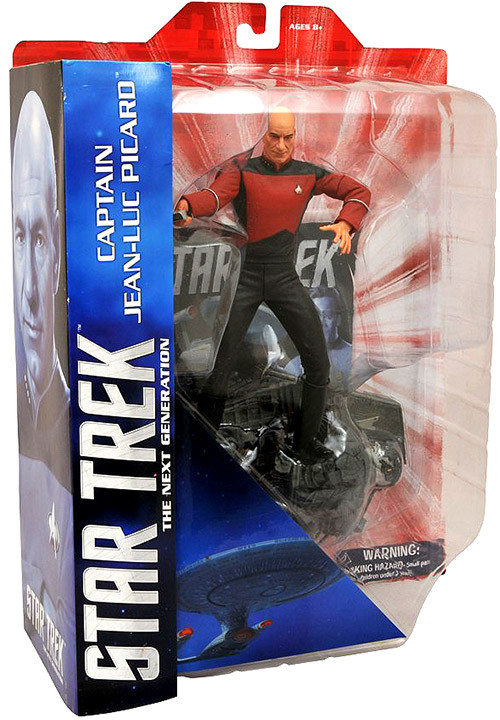 The next figure to get the deluxe, 7-inch treatment from DST is Captain Jean-Luc Picard, from Star Trek: The Next Generation. Striking an attack pose atop a detailed Borg battle scene display base, this figure will feature limited articulation as well as The all-new Star Trek Select line is boldly going forward, and leaving the 23rd century behind! The next figure to get the deluxe, 7-inch treatment from DST is Captain Jean-Luc Picard, from Star Trek: The Next Generation. Striking an attack pose atop a detailed Borg battle scene display base, this figure will feature upper-body articulation as well as an exacting sculpt and paint. Figure comes in display-ready Select packaging, with shelf reference panel. Sculpted by Patrick Pigott!