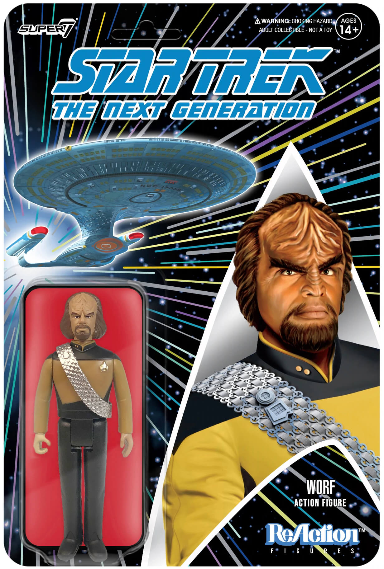 Beam aboard the USS Enterprise-D as Captain Jean-Luc Picard and his stalwart crew from Star Trek: The Next Generation join Super7's ReAction figure line. Each 3 3/4" figure comes packaged on a vintage style blister card with an illustrated backing card!