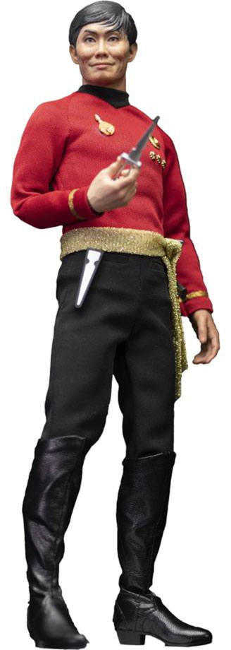 George Takei had a large scar on his face for this portrayal and had fun with the sly, evil grins. EXO-6 has recreated this look in detail for this 1:6 scale museum-quality action figure. Standing 11 inches tall, every element, from his 23rd-century uniform to his Terran awards are authentically reproduced. The original portrait sculpt of Takei as Mirror Sulu has an authentic, hand-painted likeness.