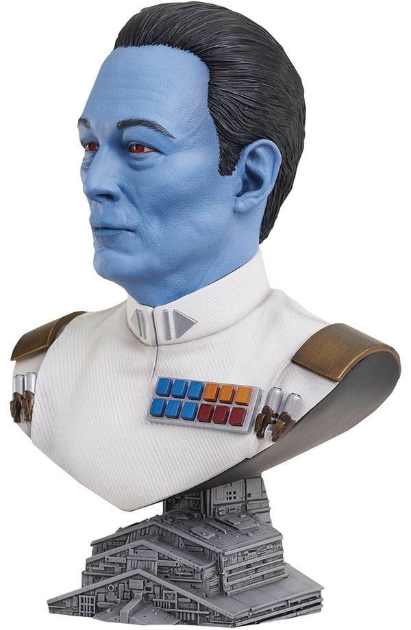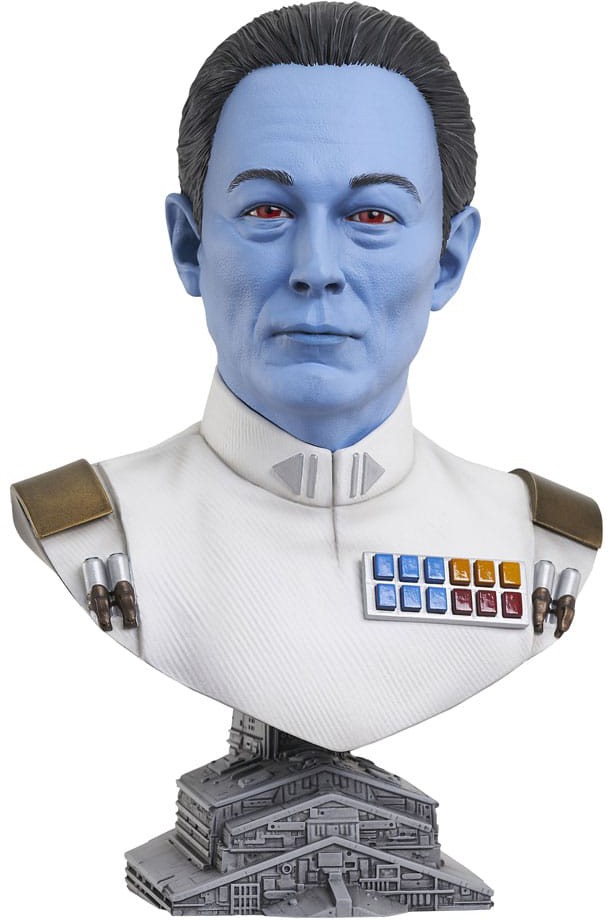 Grand Admiral Thrawn is a legend in the Empire, and now he's a Legend in 3-D! The live-action Thrawn has finally been revealed in the Disney+ series Star Wars: Ahsoka, and Gentle Giant Ltd. is celebrating with a portrait of the blue-skinned villain in bust form! Measuring approximately 10" tall, this 1/2 scale bust sits atop a Star Destroyer base, and is limited to only 1,000 pieces. It comes packaged with a numbered certificate of authenticity in a full-color box.