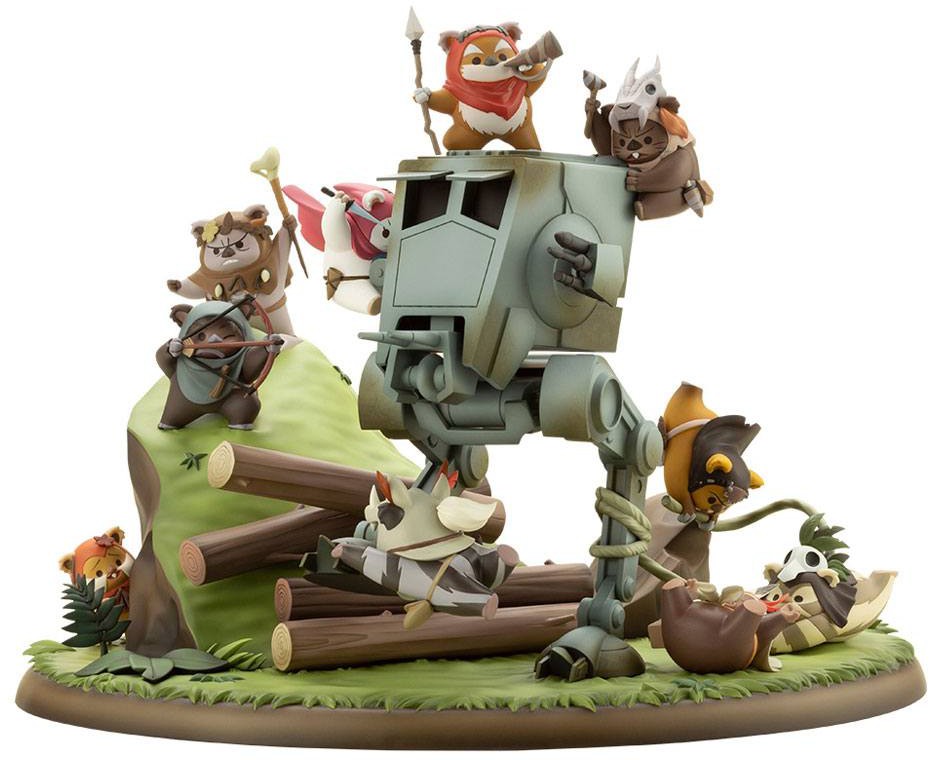 As the name implies, this statue features the Little Rebels in the Battle of Endor™. Brought to life in a fully-detailed diorama, the Ewok™ tribe of the forest moon of Endor™ create a cute and gallant scene in their battle against the Imperial army. The expression of each character fighting around the AT-ST™ is a must-see for fans!