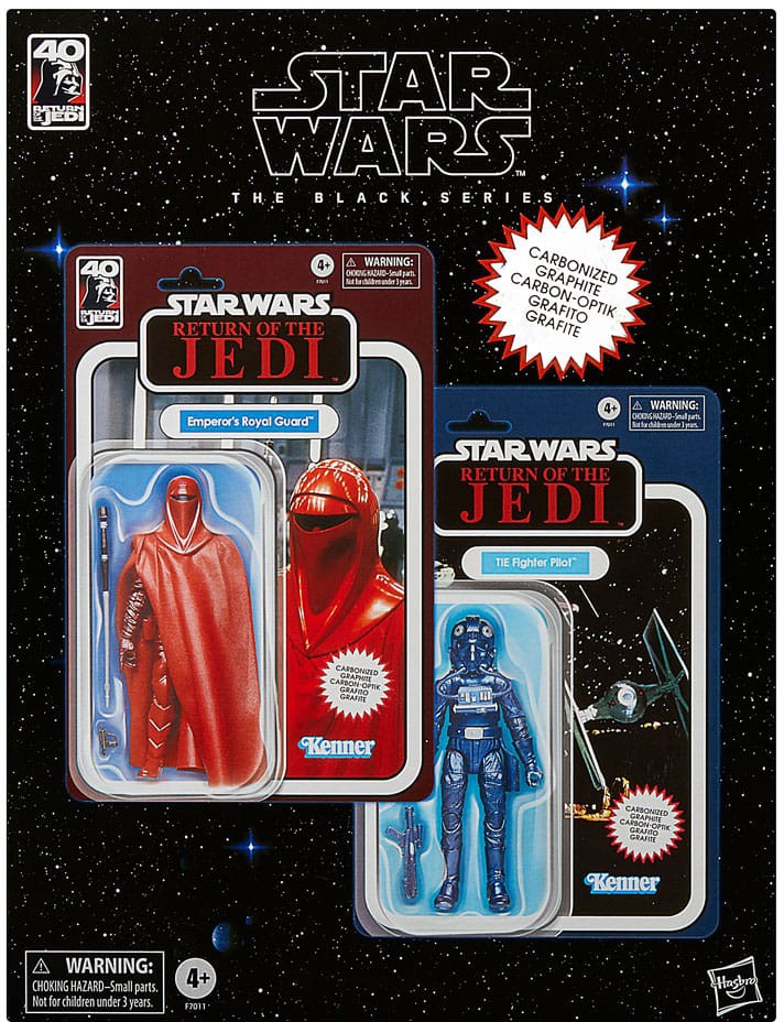 Disse særlige samlerfigurer fra Black Series i karboniseret skala på 15 cm ligner kejserens kongelige garde og en TIE Fighter-pilot fra Star Wars: Return of the Jedi med førsteklasses detaljer, metalfinish og flere bevægelige punkter.