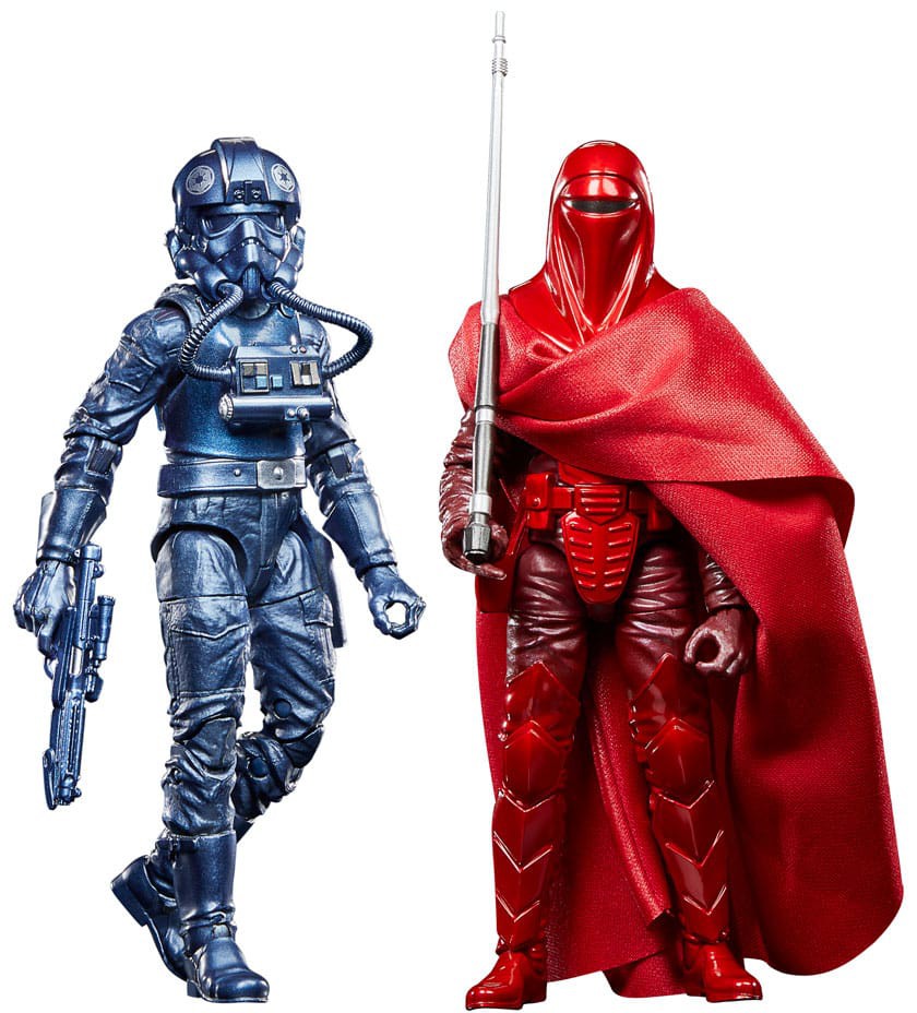 These special carbonised collectible 15-cm-scale Black Series figures are detailed to look like an Emperor's Royal Guard & a TIE Fighter Pilot from Star Wars: Return of the Jedi, featuring premium detail, a metallic finish and multiple points of articulation.