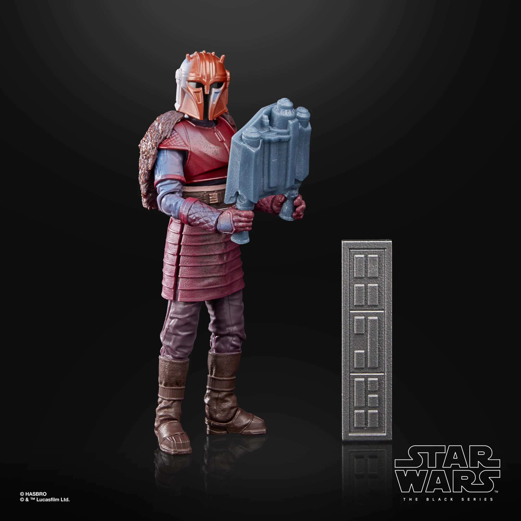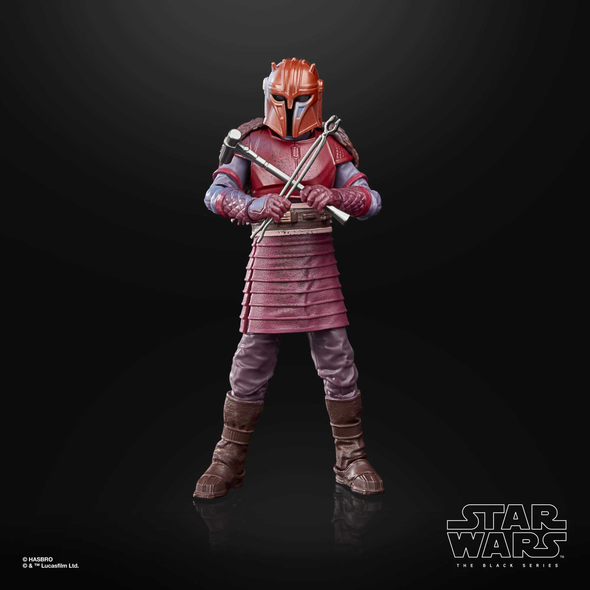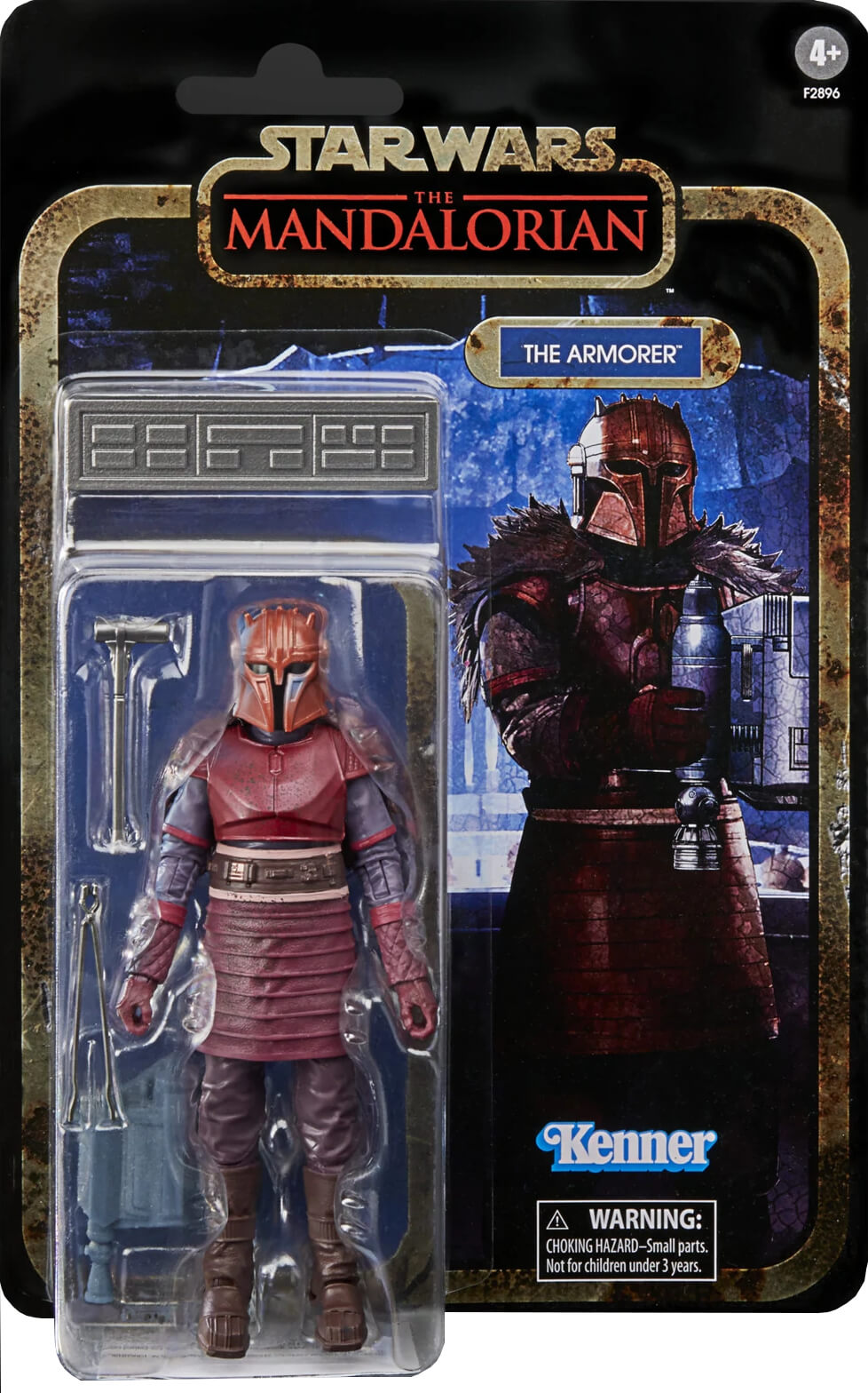 The Armorer figure is detailed to look like the character from The Mandalorian, featuring premium detail and multiple points of articulation. Features vintage-designed The Black Series packaging that has been treated with a weathered look, inspired by the stylized images seen during the end credits of the live-action Disney+ series.