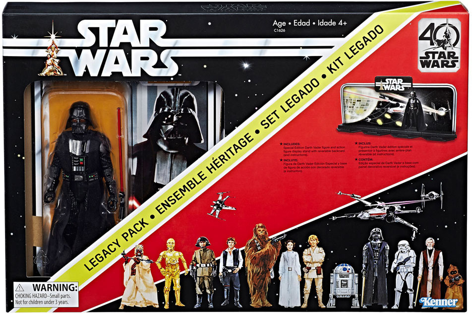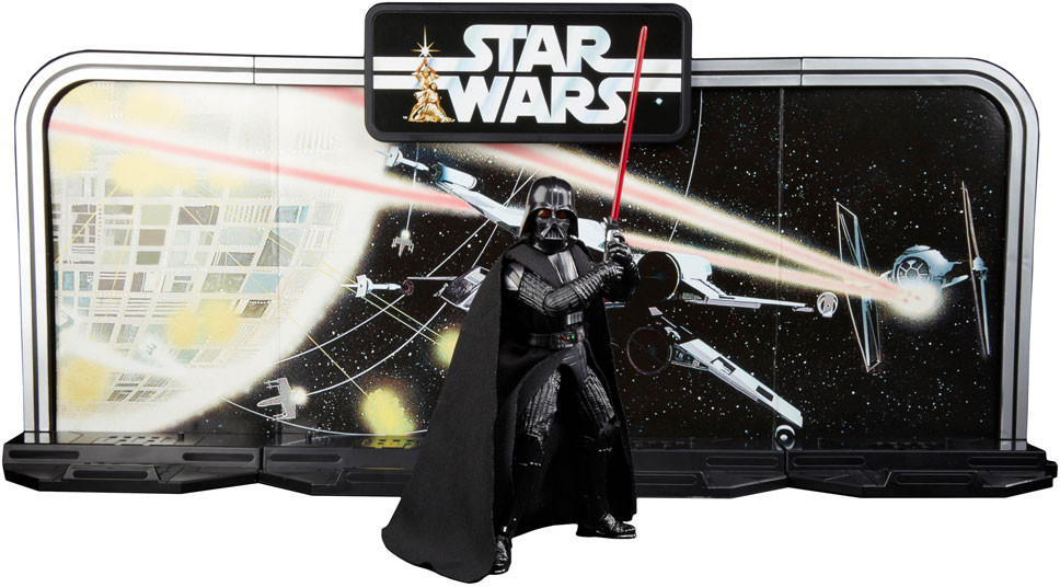 From Hasbro's 6-inch Black Series comes this 40th Anniversary Legacy Pack. It includes a Darth Vader action figure (15 cm) on a classic Kenner-style blister card und diorama background display stand.