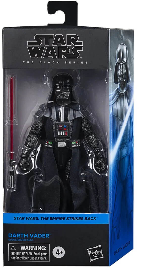 The 6-inch-scale Black Series Darth Vader action figure is detailed to look like the character from Star Wars: The Empire Strikes Back, featuring premium detail and multiple points of articulation.
