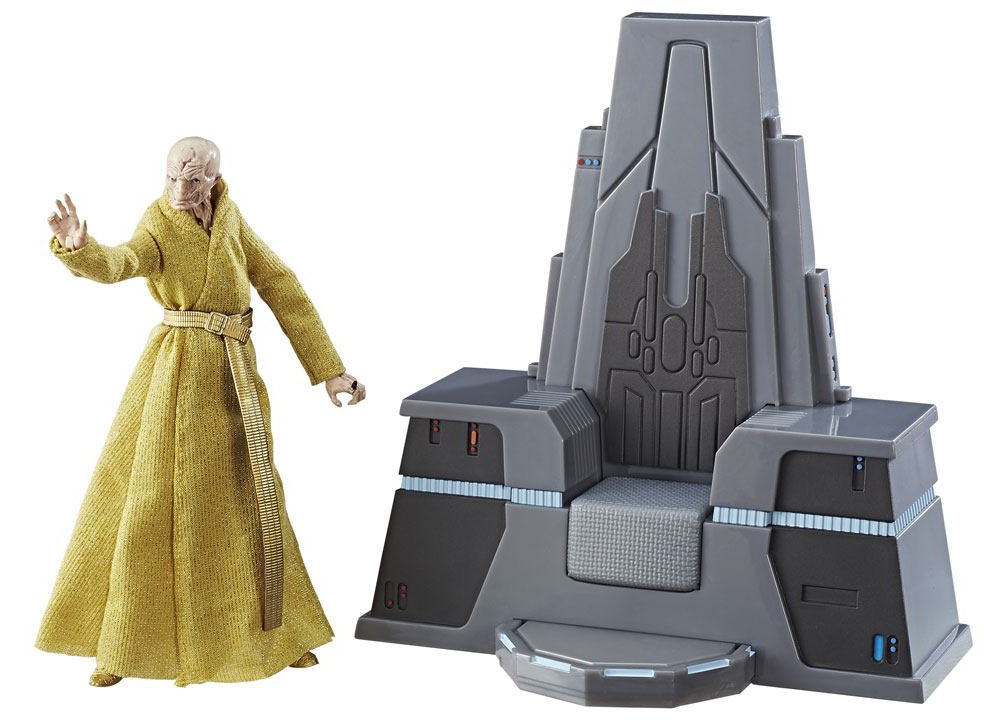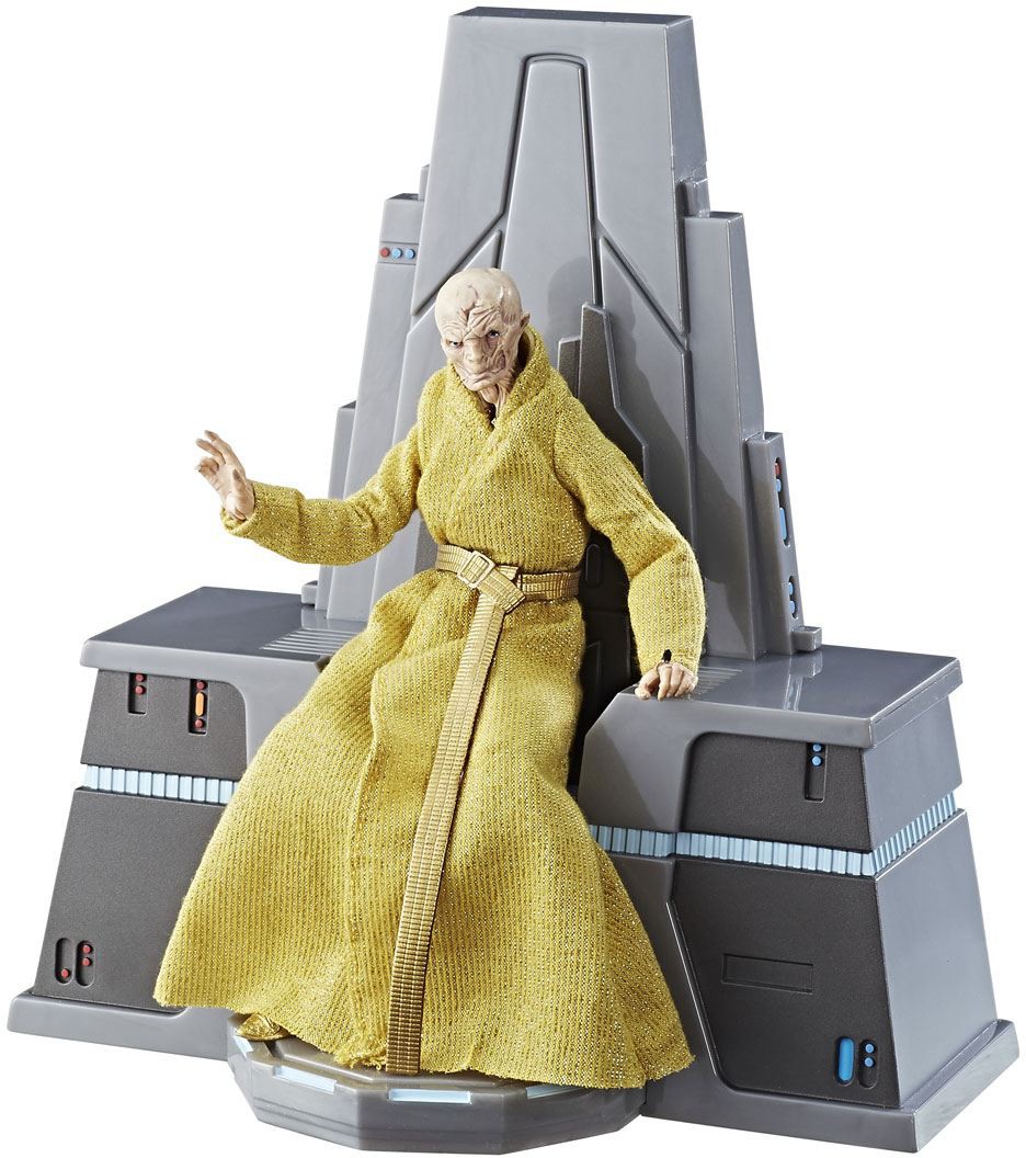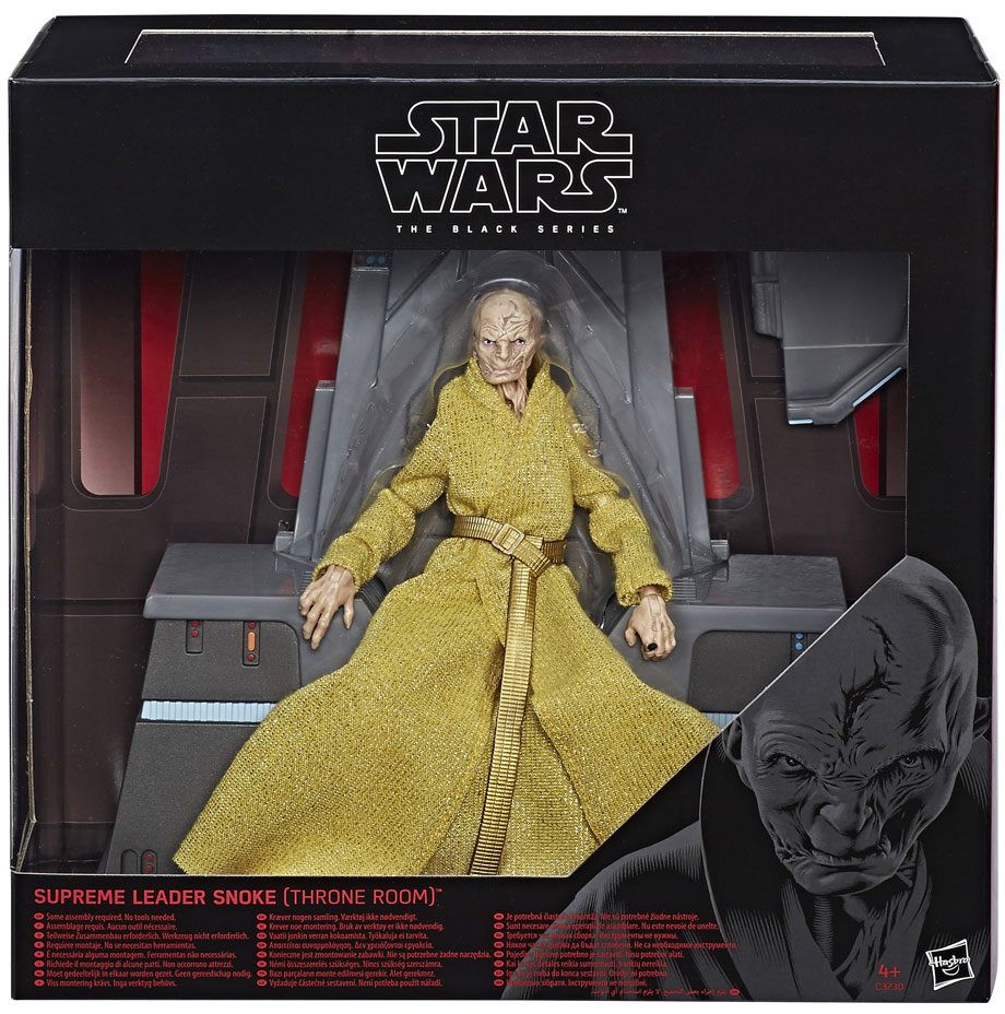 From Hasbro's "Black Series" comes this exclusive action figure of Supreme Leader Snoke on his Throne. It stands approx. 15 cm tall and comes with accessories in a window box packaging.