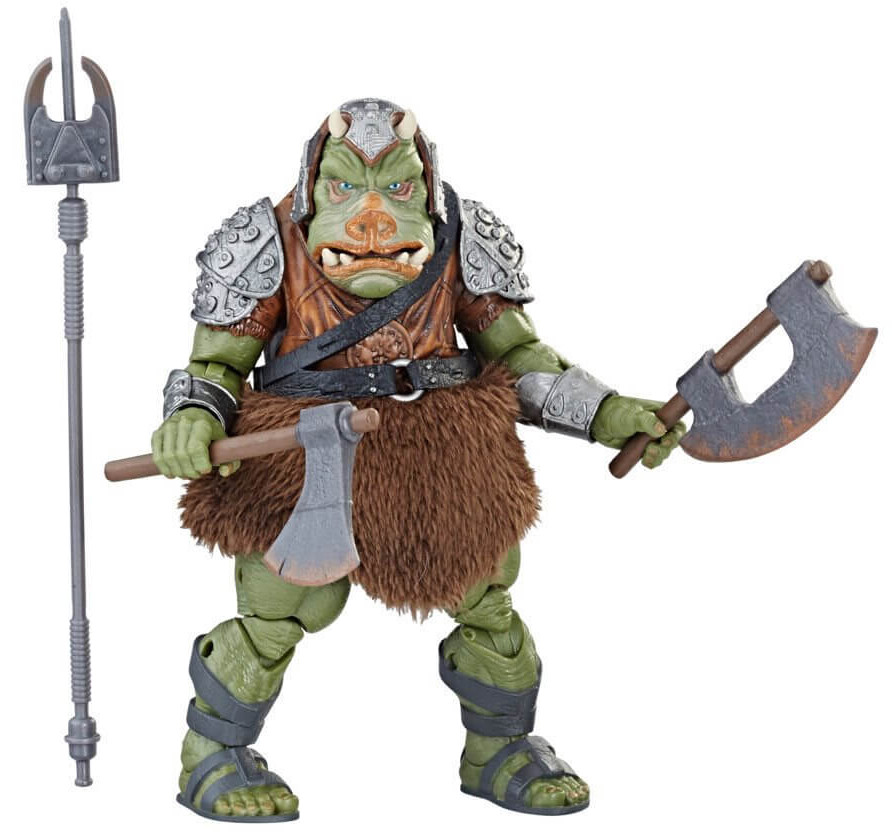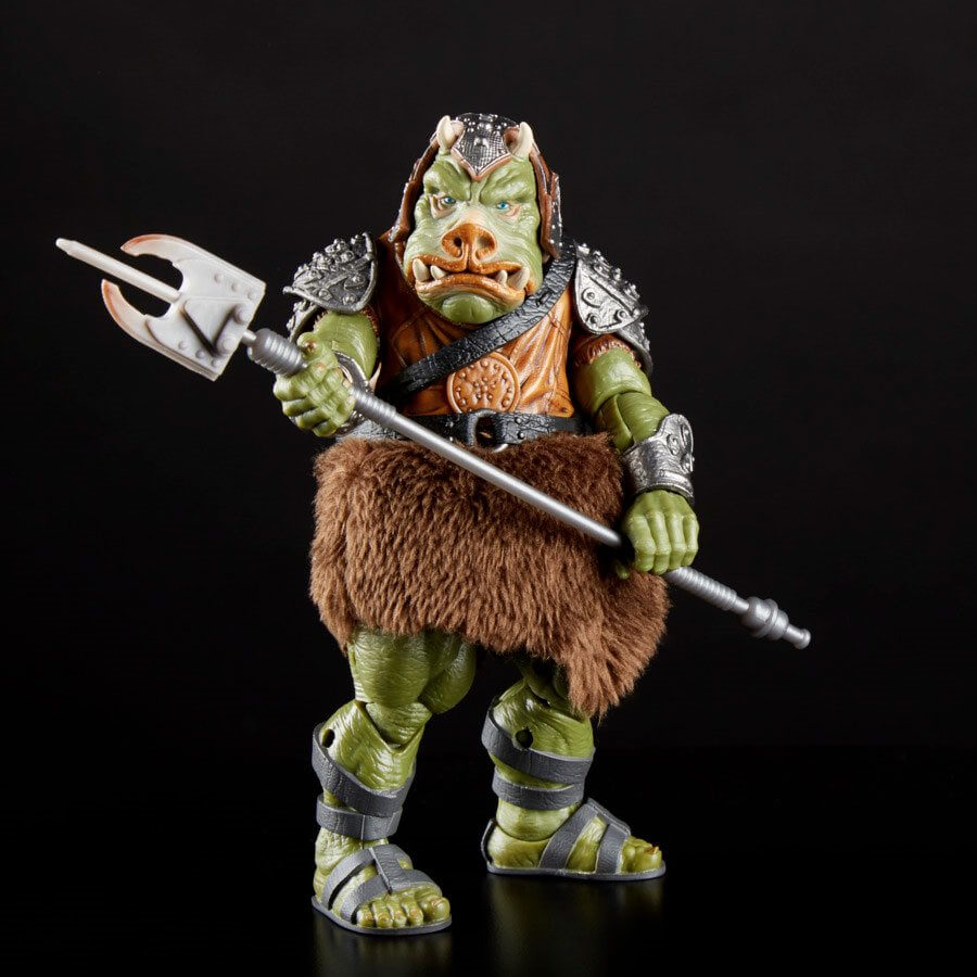 Crafted to look like the iconic character from Star Wars: Return of the Jedi, this Gamorrean Guard figure from Star Wars The Black Series is exquisitely-detailed with true-to-story design and incredible features. Designed for ultimate collectability and display, the Gamorrean Guard figure features movie-real design and detailing as well as premium articulation. His mouth opens. His costume has furry elements. He's big. And a green pig. With three awesome weapons inspired by the films and over three decades of toy action figures, you can build an army.