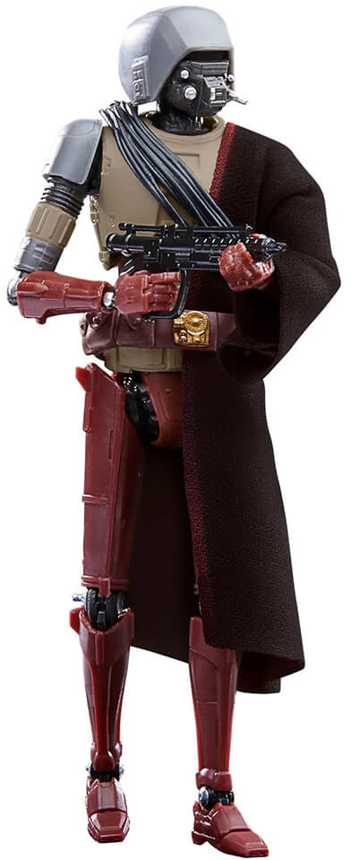 HK-87: Based on an antiquated assassin droid design, a pair of HK droids serve as bodyguards for the Magistrate Morgan Elsbeth on the world of Corvus. 6-inch plastic robot includes cape and blaster.