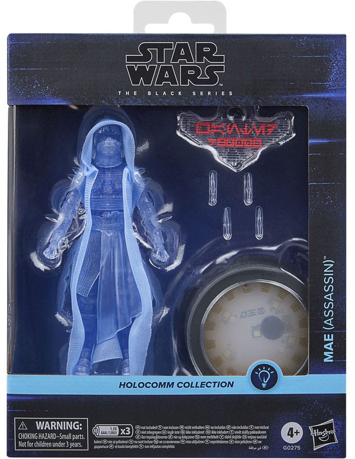 Star Wars The Black Series includes 6 inch action figures, vehicles, and roleplay items from the 40-plus-year legacy of the Star Wars galaxy. This Star Wars action figure is detailed to look like a unique hologram version of Mae (Assassin), featuring premium detail and multiple points of articulation. Plus, each figure in The Black Series Holocomm Collection comes with a light-up holopuck for display!