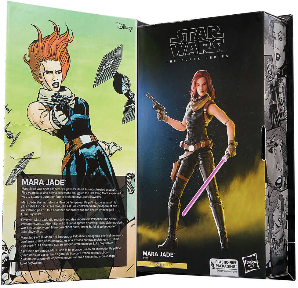 This collectible 6-inch-scale Black Series figure is detailed to look like Mara Jade from Star Wars entertainment, featuring premium detail, multiple points of articulation, and 2 publishing-inspired accessories.