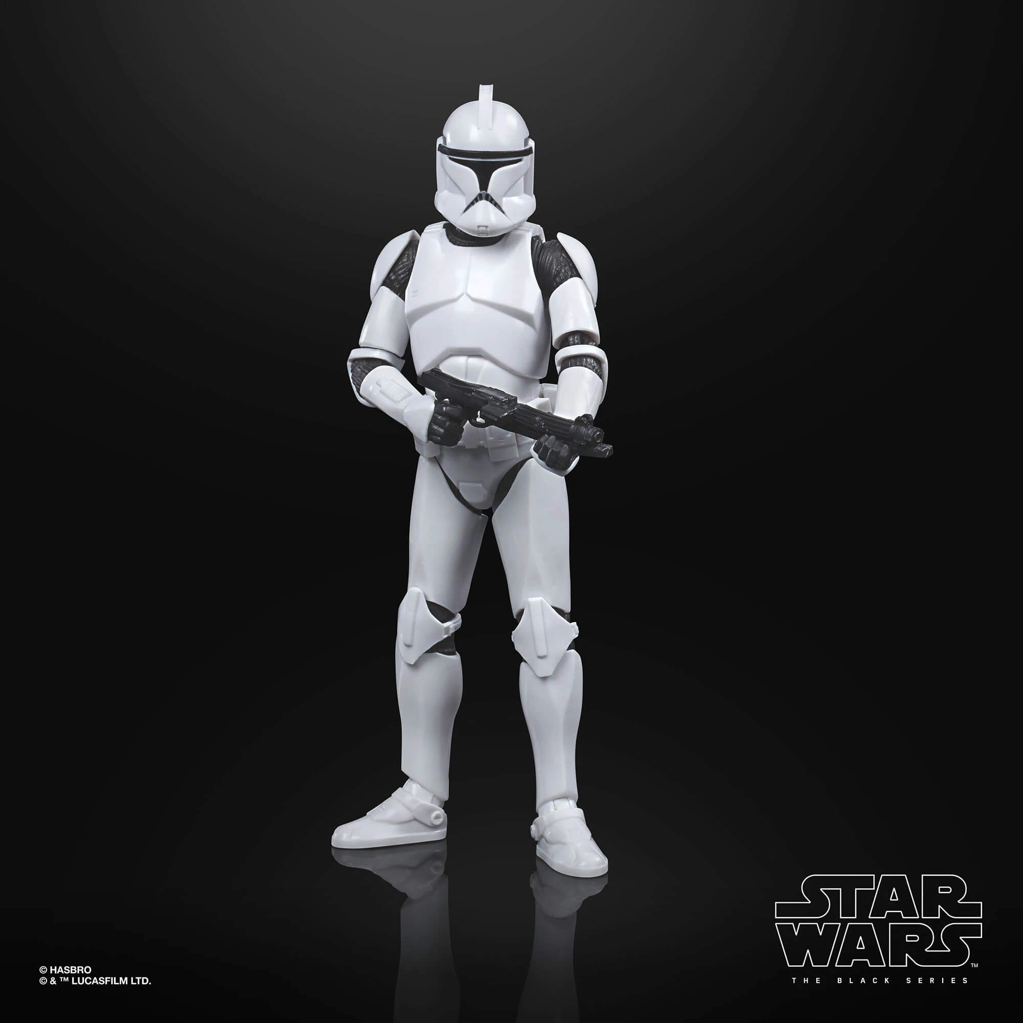 The 6-inch scale Black Series figure is detailed to look like the Phase I Clone Trooper character from Star Wars: The Clone Wars, featuring premium detail and multiple points of articulation.