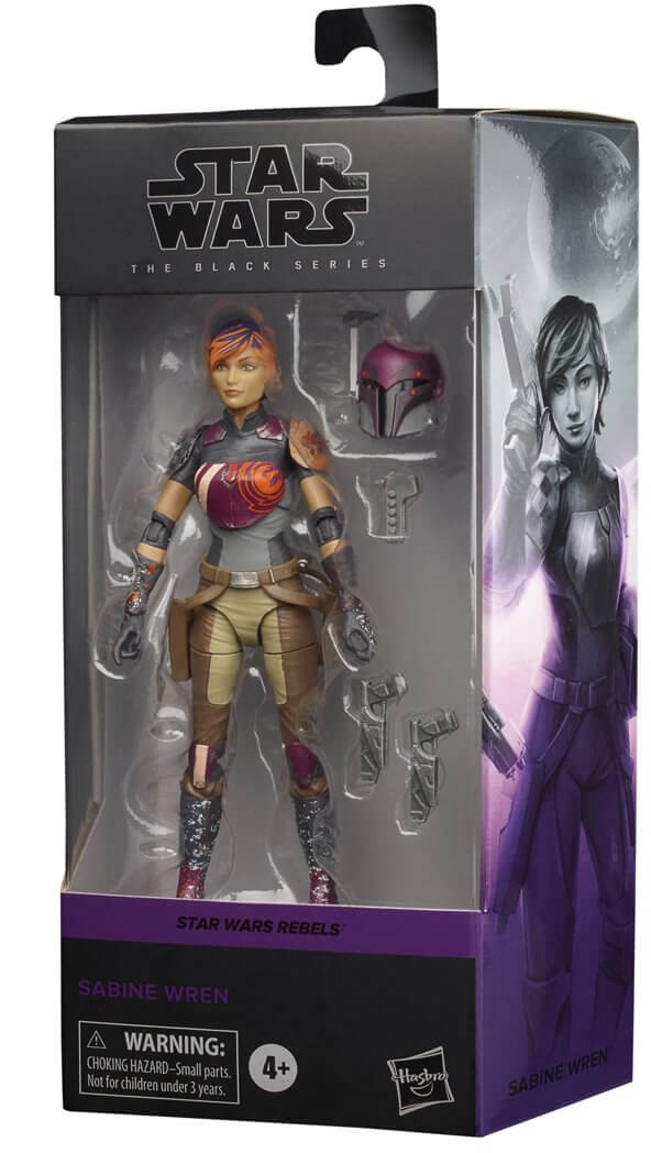 The 6-inch-scale Black Series figure is detailed to look like the Sabine Wren character from the Star Wars Rebels animated series, featuring premium detail and multiple points of articulation.