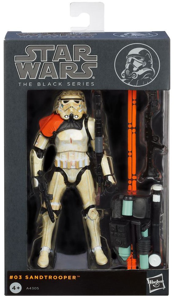 From Hasbro's "Black Series" comes this action figure of a Sandtrooper. It stands approx. 15 cm tall and comes with accessories in a window box packaging.