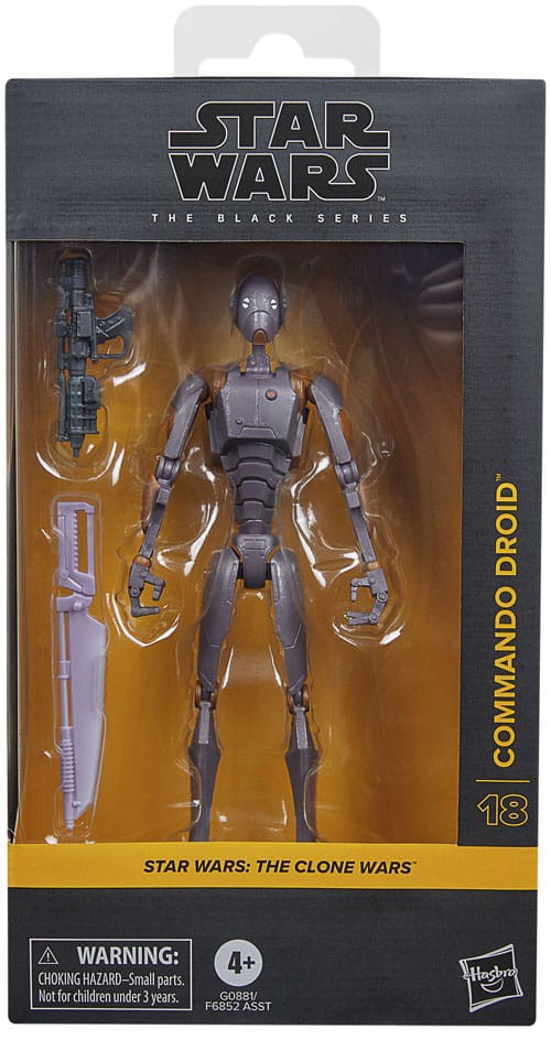Star Wars The Black Series includes 6 inch action figures, vehicles, and roleplay items from the 40-plus-year legacy of the Star Wars Galaxy, letting fans create galactic scenes with a faithfulness to Star Wars comic books, movies, and series. This Star Wars action figure is detailed to look like a commando droid from Star Wars: The Clone Wars. With exquisite features and decoration, The Black Series embodies the quality and realism that Star Wars devotees love. May the Force be with you!