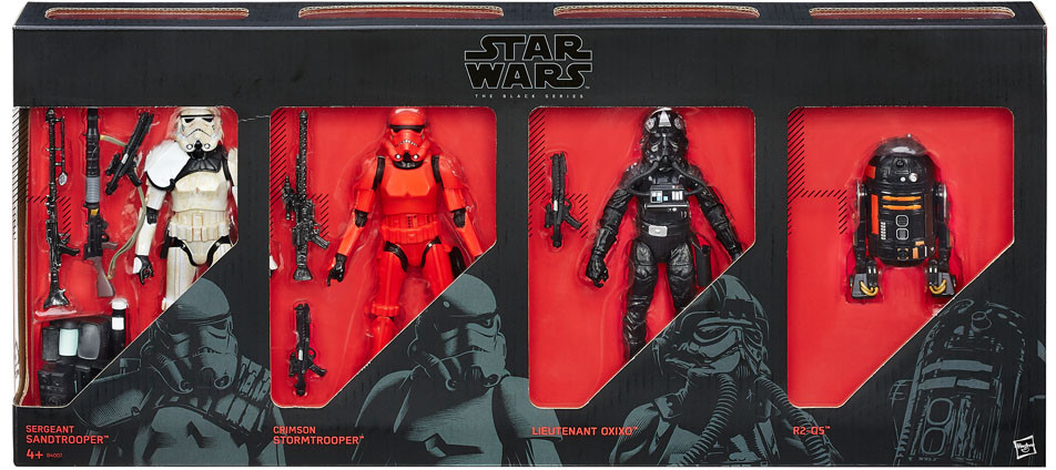 The Black Series brings exquisite features and articulated movement, which for every devotee of Star Wars means quality and realism. Take command with this Trooper Vision 4-Pack including Sandtrooper Sergeant, Crimson Stormtrooper, Lieutenant Oxio, and R2-Q5. Born from the remnants of the Empire, the First Order emerged as a power to be reckoned with in the years following the battle of Endor.
