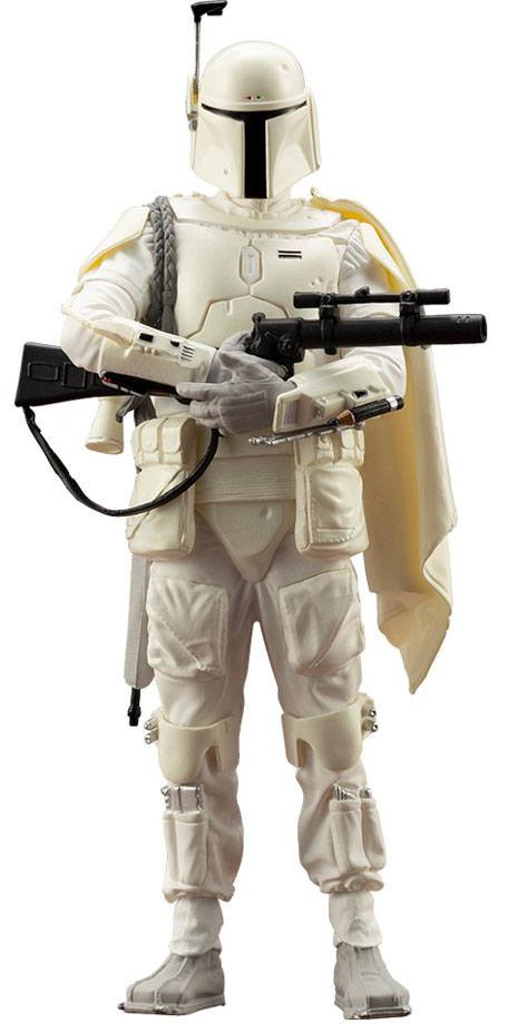 Kotobukiya is excited to unveil the ARTFX+ BOBA FETT White Armor Ver., inspired by a piece of Star Wars history. At 1:10 scale (roughly 7.5" inches tall on the included magnetized base) Boba Fett stands at the ready cradling his iconic EE-3 carbine rifle.