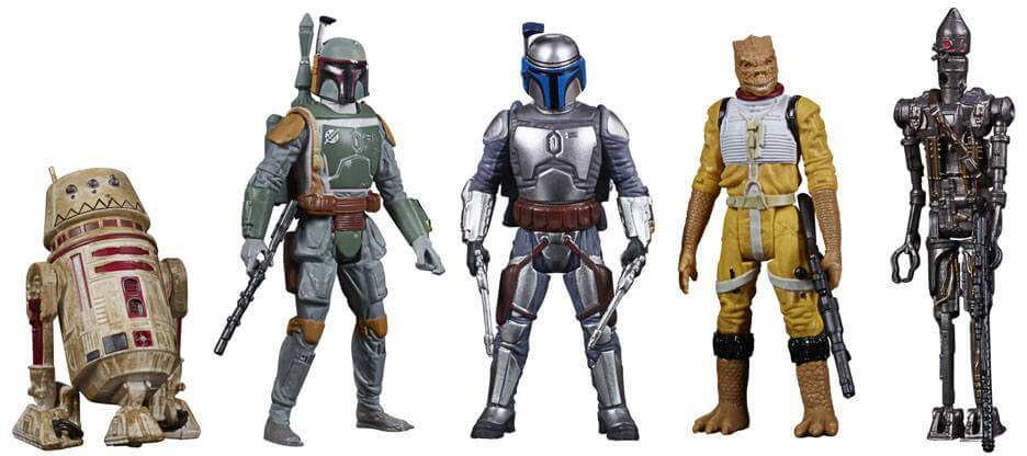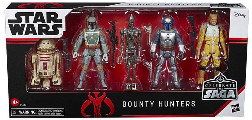 - The Star Wars Celebrate the Saga Bounty Hunters pack comes with R5-P8, Jango Fett, Boba Fett, Bossk, and IG-88 action figures, featuring multiple points of articulation