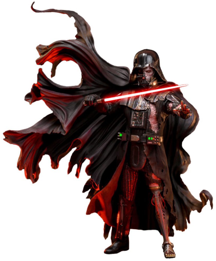 The stunning collectible Star Wars action figure is meticulously developed that showcases the detailed flesh and cybernetic parts of the menacing Sith Lord. It features a brand new head sculpt of the former Anakin Skywalker, a full helmet with weathering effects, highly detailed battle damaged suit and cybernetic parts of Vader's body, LED light-up Lightsaber, and an adjustable themed display base with LED light up function!