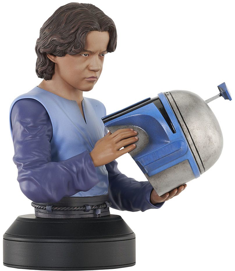 Han vil hævne sin far! Den unge Boba Fett holder sin far Jangos hjelm i hænderne, mens han planlægger sin hævn over de jedier, der dræbte dusørjægeren. Denne ca. 13 cm store minibuste i resin forestiller skuespilleren på en sort sokkel og er begrænset til kun 2.000 eksemplarer. Den leveres i en farverig æske med et nummereret ægthedscertifikat.