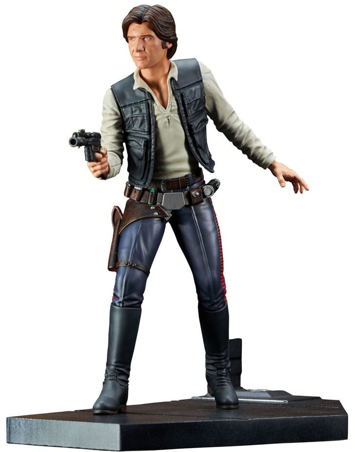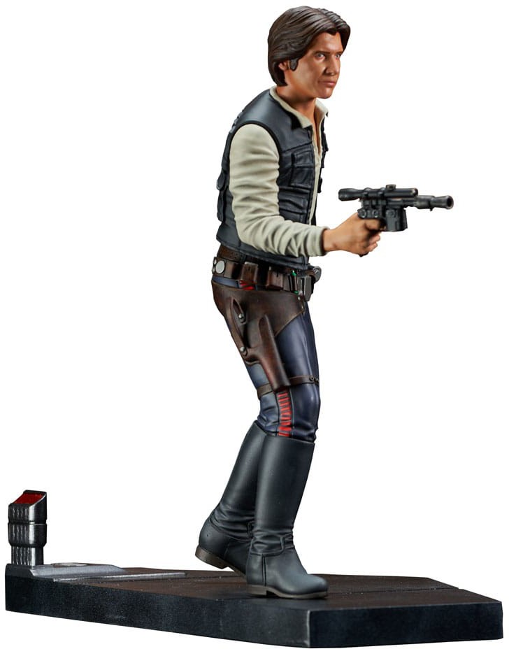 Never tell him the odds! Han Solo draws his blaster and prepares for a fight in this all-new 1/7 scale statue, part of Gentle Giant's Premier Collection! Wearing his iconic vest and striding across a metallic landing platform, the Corellian smuggler stands approximately 10" tall and features detailed sculpting and paint applications. This statue is limited to only 3000 pieces comes packaged with a certificate of authenticity in a full color box.