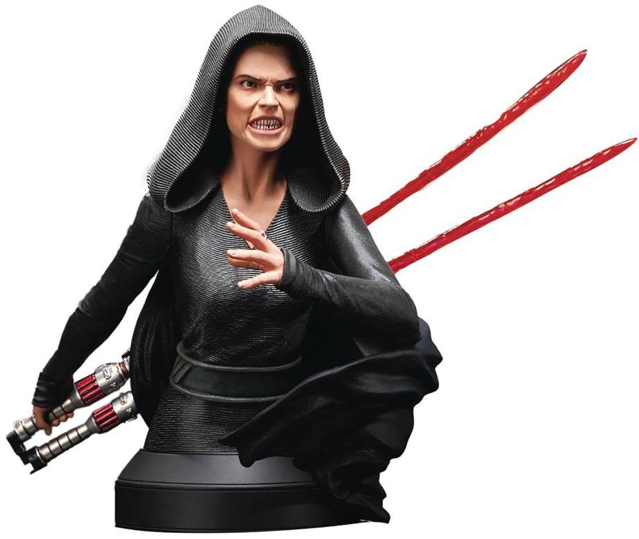 A good mini-bust goes to the Dark Side in this all-new 1/6 scale Star Wars collectible! Jedi-in-training Rey gets a glimpse of her life as the disciple of Emperor Palpatine in the ninth Star Wars movie, wielding a menacing double-bladed lightsaber, and now that moment has been captured as a highly detailed sculpture! Limited to only 2500 pieces, this New York Comic-Con exclusive sits atop a pedestal, and comes packaged in a full-color box with a numbered certificate of authenticity. Designed by the Silva Bros., sculpted by the artisans at Gentle Giant Ltd.!