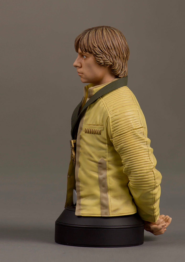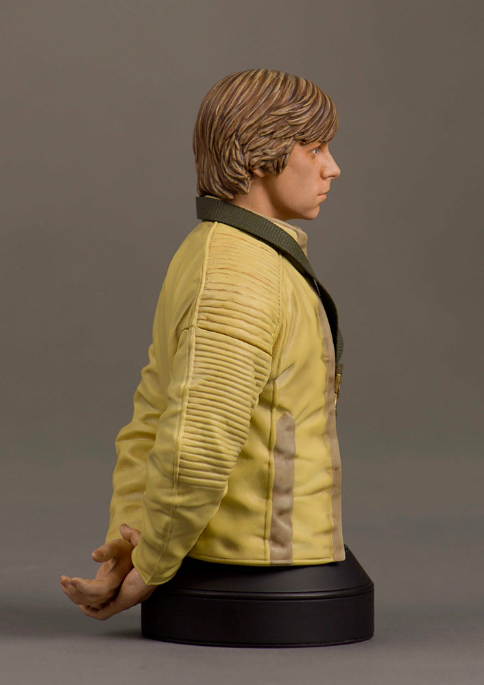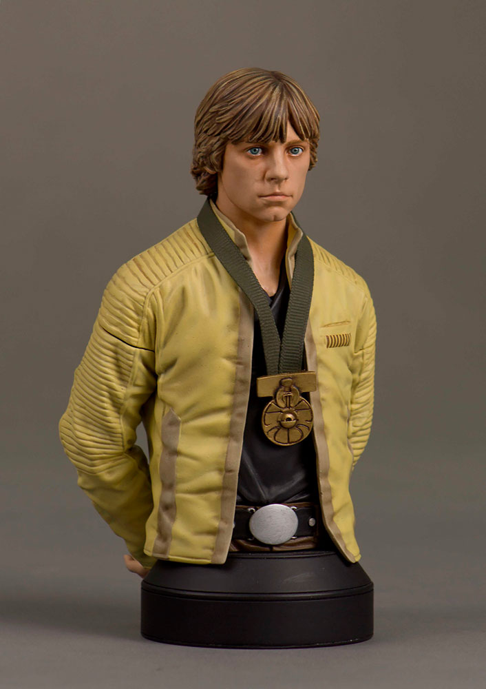 This amazing mini bust illustrates the pride that Luke Skywalker shows at the end of the film as he embraces his destiny as hero of Yavin, and hero of the Rebellion. This mini bust was digitally sculpted by our master artisans, using actual archival footage and designs. Each bust is rendered using the highest quality polystone, and is hand painted to exacting detail. All of the pieces in this series are individually numbered and paired with a matching certificate of authenticity.