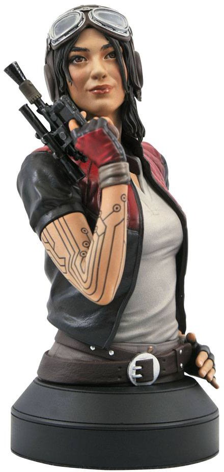 The Doctor is in! Cunning rogue and Darth Vader colleague Dr. Aphra joins the Star Wars mini-bust line with her blaster at the ready! Capturing the character as she appears in the pages of Marvel Comics, this 1/6 scale, approximately 7" mini-bust features detailed sculpting and paint applications. It is limited to 3,000 pieces and comes packaged with a numbered certificate of authenticity in a full-color box.