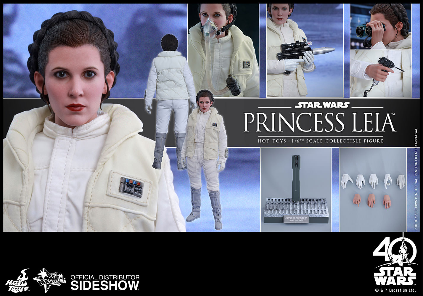 Sideshow and Hot Toys are proud to officially present the Princess Leia sixth scale collectible figure from Star Wars: The Empire Strikes Back! The highly-accurate collectible figure is specially crafted based on the appearance of Princess Leia in the film. Featuring a newly developed head sculpt with stunning likeness, sophisticated tailoring of Leia’s outfit as seen in the battle of Hoth, an assortment of weapons and accessories, and a specially designed snow-theme figure stand, this collectible captures all of the details of the great Rebel leader.