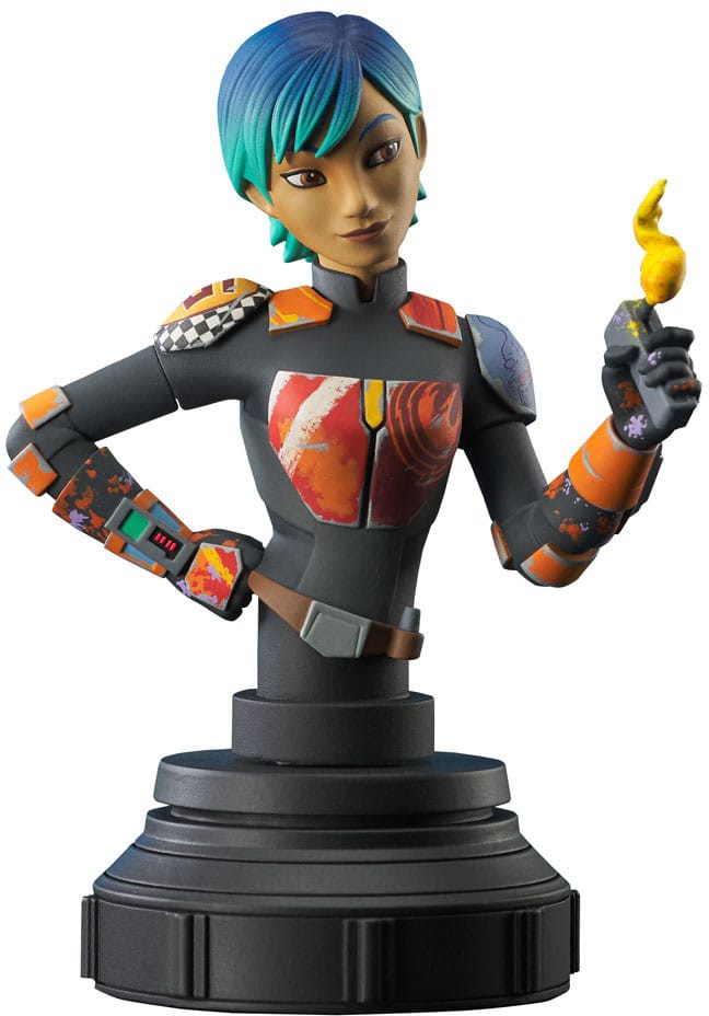 A Gentle Giant Ltd. Release! The Ghost crew's resident Mandalorian tagger is now the latest animated-style mini-bust from Gentle Giant Ltd.! Standing approximately 6" tall, this 1/7 scale mini-bust features an interchangeable head & arms so you can show her helmeted or unhelmeted, with her spray paint or a blaster! Limited to only 3000 pieces, it comes packaged with a numbered certificate of authenticity in a full color box.