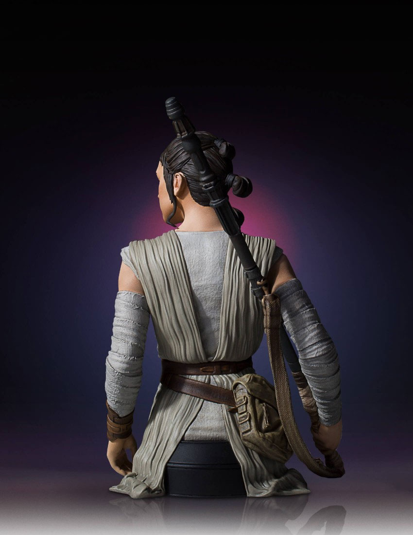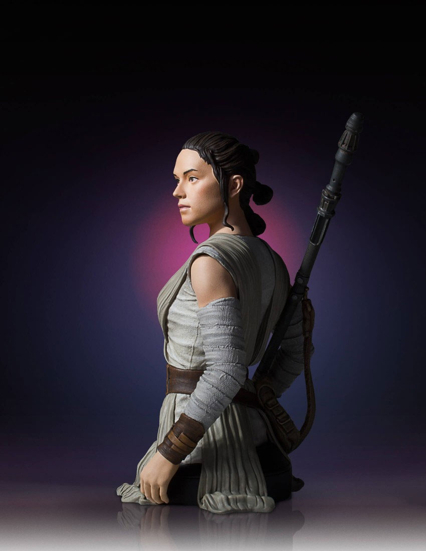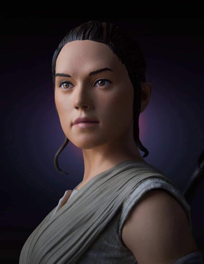 This limited edition, hand-painted, 1:6 scale Star Wars Mini Bust is cast in high-quality polyresin, and comes individually numbered with a matching Certificate of Authenticity. Rey is the perfect addition to your Star Wars collection.