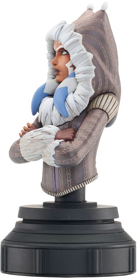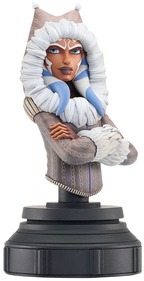 Bundle up, because the newest animation-inspired Star Wars bust takes us to icy Ilum, where Ahsoka Tano is taking her charges to build their first lightsabers! Based on the episode The Gathering," this approximately 5-inch mini-bust of Ahsoka features animation-accurate sculpting and detailed paint applications. It comes packaged in a full-color window box, with a numbered certificate of authenticity. Limited to 3,000 pieces.