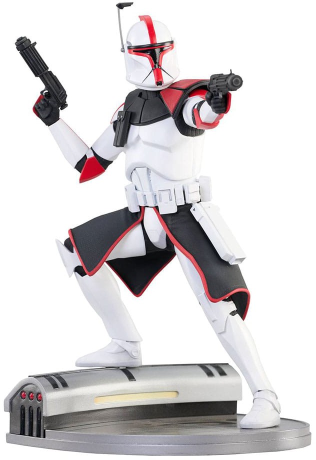 Det er klonerne, der angriber! Kaptajn Fordo affyrer en blaster, mens hans anden blaster er hævet, i denne helt nye 1/7-skala resinstatue! I sin karakteristiske hvide rustning med røde detaljer er Fordo ca. 28 cm høj med den ene fod oppe på en teknisk base. Den er begrænset til kun 1000 eksemplarer og leveres i en farverig æske med et nummereret ægthedscertifikat.