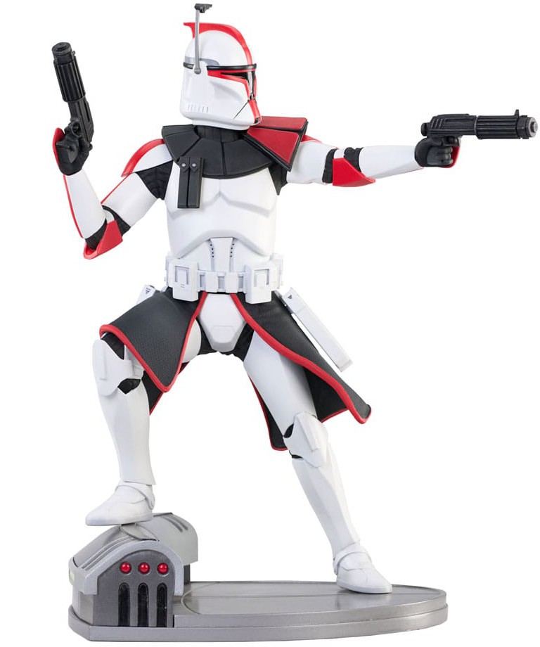 It's the attack of the clones! Captain Fordo fires one blaster, with his other blaster raised, in this all-new 1/7 scale resin statue! In his distinctive white armor with red accents, Fordo stands approximately 11 inches tall with one foot up on a technological base. Limited to only 1000 pieces, it comes packaged in a full-color box with a numbered certificate of authenticity.