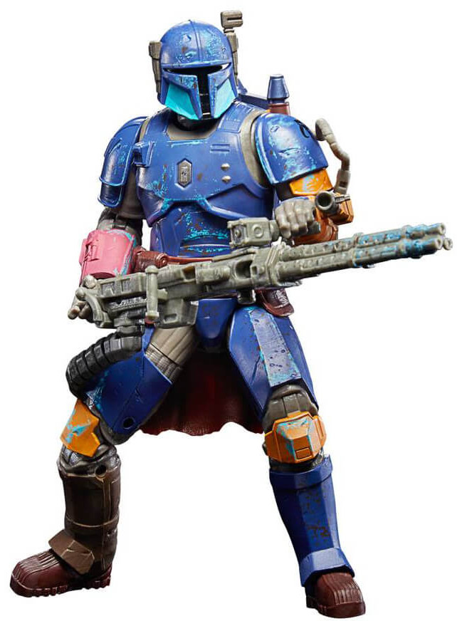 The 6-inch-scale Heavy Infantry Mandalorian figure is detailed to look like the character from The Mandalorian, featuring premium detail and multiple points of articulation. Features vintage-designed The Black Series packaging that has been treated with a weathered look, inspired by the stylized images seen during the end credits of the live-action Disney Plus series.
