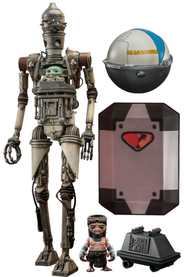 Den meget nøjagtige samlerfigur har en meget detaljeret mekanisk krop med gode led og et cockpit til Grogu, dygtigt påførte vejreffekter, lydeffektfunktion svarende til IG-12's "Ja og Nej"-respons, Anzellan Droidsmith med udskiftelige arme, madtilbehør og en figurstander.