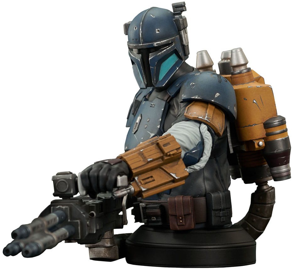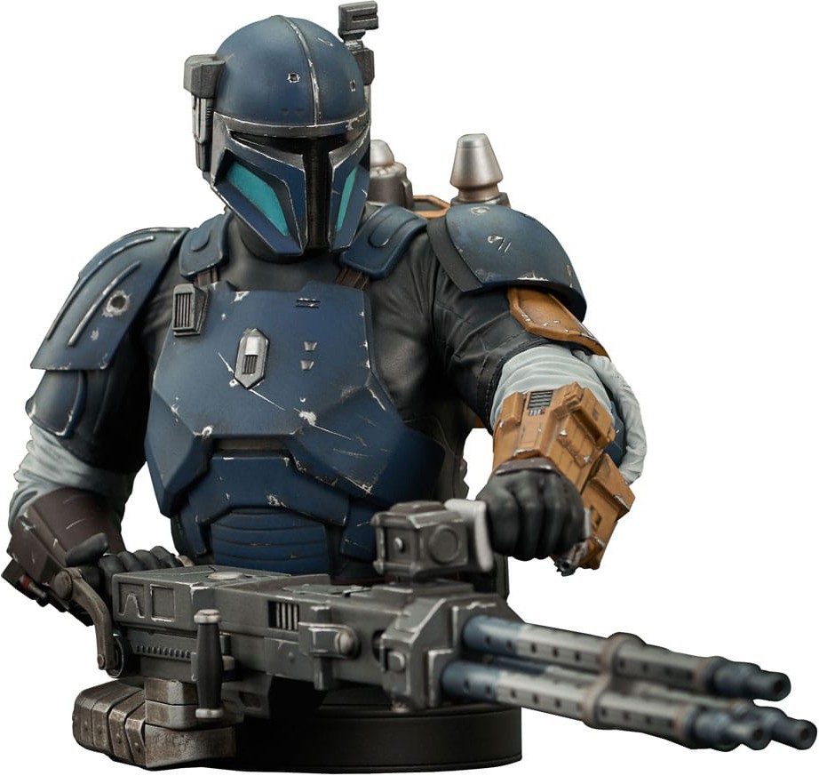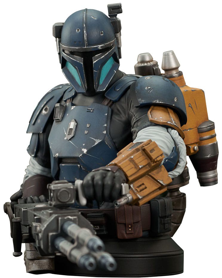All hail the House of Vizsla! The descendant of many great leaders, Paz Vizsla is a heavily armed, heavily armored Mandalorian who once did Din Djarin a great service. Standing approximately 6" tall atop a pedestal base with his massive gun leveled, Paz Vizsla features detailed sculpting and paint applications. Limited to only 3000 pieces, it comes packaged with a numbered certificate of authenticity in a full color box.