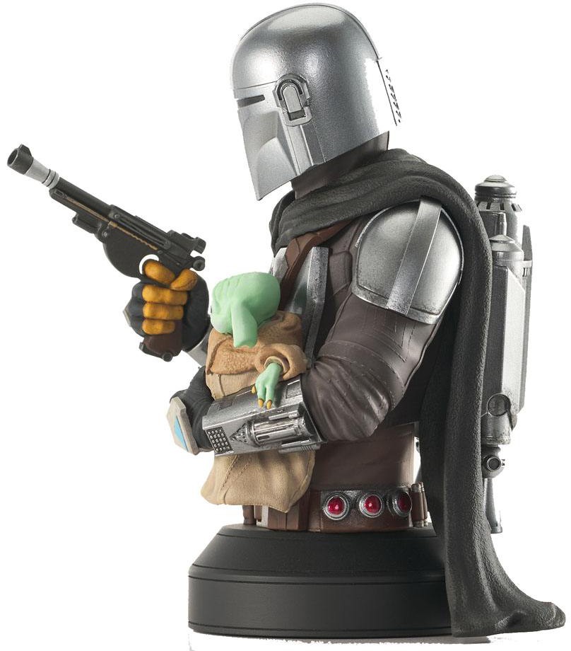 A PREVIEWS Exclusive! With a blaster in one hand and Grogu in the other, the Mandalorian is ready to take on all opponents. Straight out of the Disney+ TV series, the Beskar-clad Din Djarin is fiercely protective of his small companion in this exclusive 1/6 scale, approximately 6" resin mini-bust. Limited to only 3,000 pieces, it comes packaged in a full color box with a numbered certificate of authenticity.