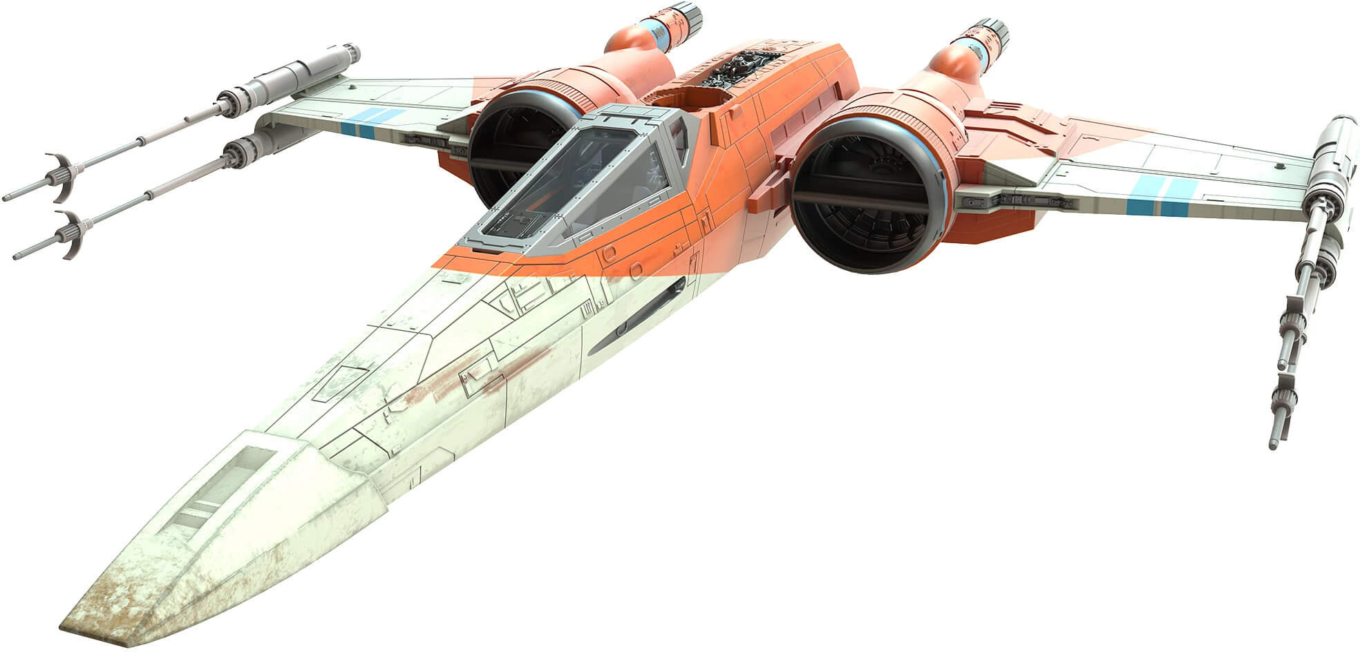Faster than the Alliance-era T-65s, Resistance X-Wings are maneuverable enough to engage TIE Fighters in dogfights, yet still hold considerable firepower.