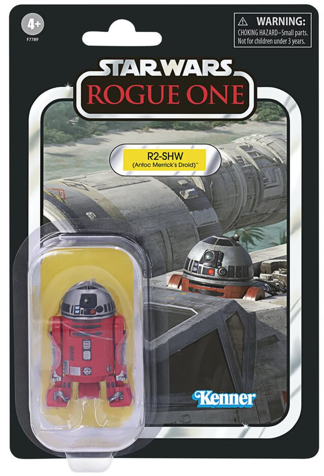 Astromech droids are a series of versatile utility robots generally used for the maintenance and repair of starships and related technology. The R2 unit is a popular example of these droids. This R2-SHW (Antoc Merrick’s Droid) action figure is inspired by the character in Rogue One: A Star Wars Story