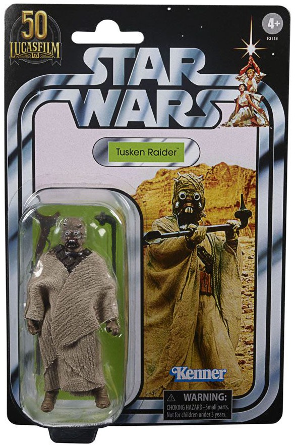 The Tusken Raider figure is inspired by the original 96 action figures produced by Kenner in the '70s and '80s, features premium design, multiple points of articulation, and is presented on an individual Vintage Collection cardback for the first time!